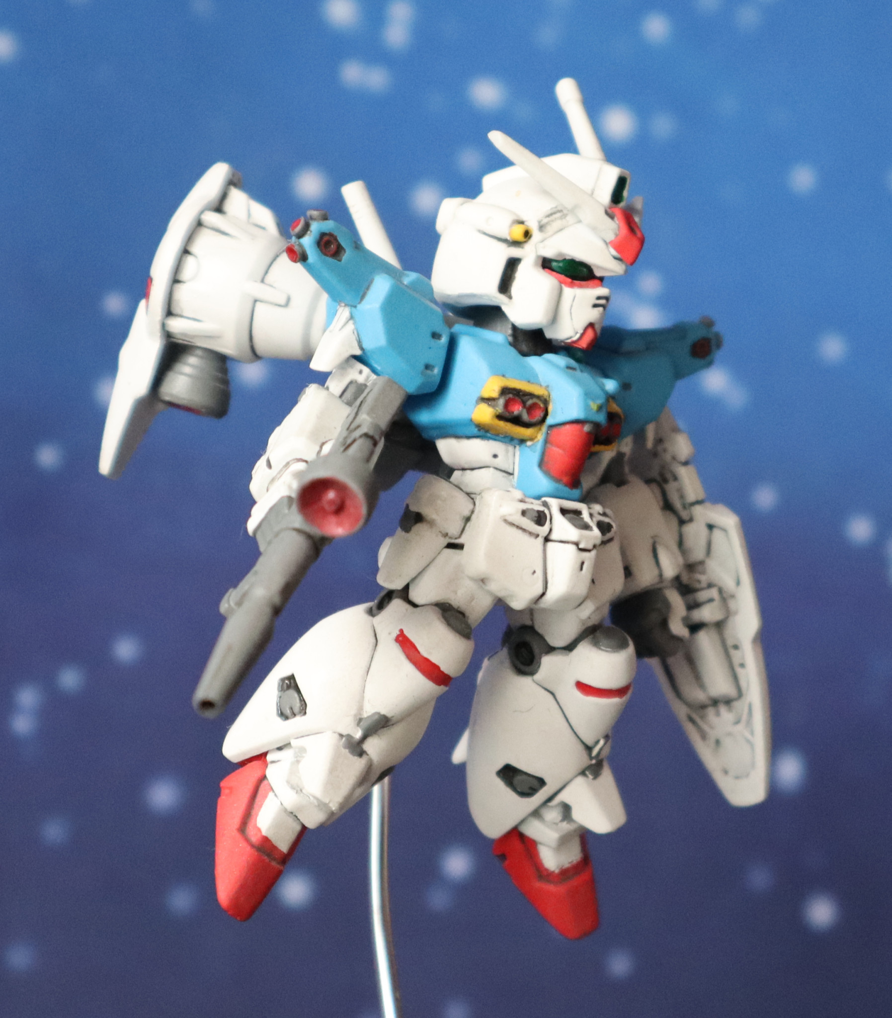ガンダムコンバージのガンダム試作1号機フルバーニアンを浮遊状態に改造後、塗装しました。