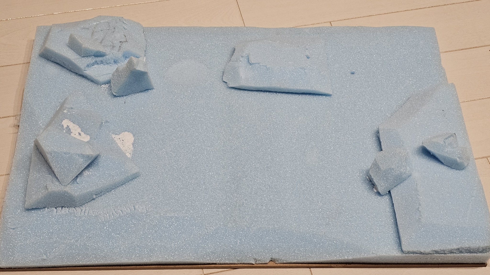 100均の板の上にスタイロフォームを貼り付けてます。ジオラマ本体の作成時間は4時間ほどになります。