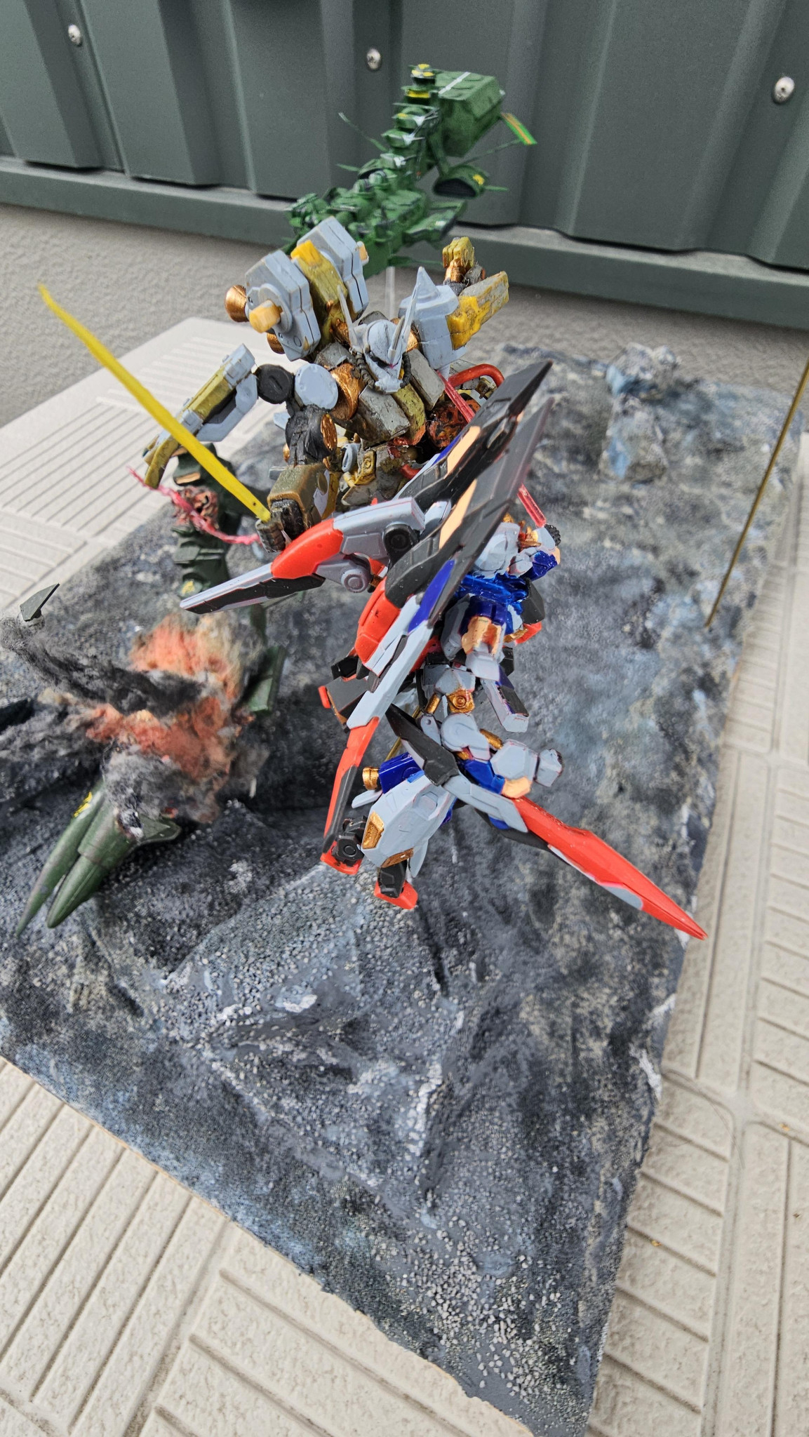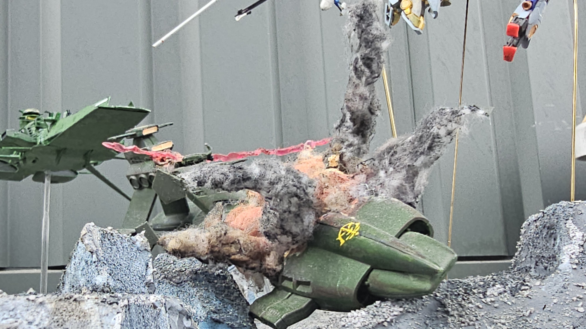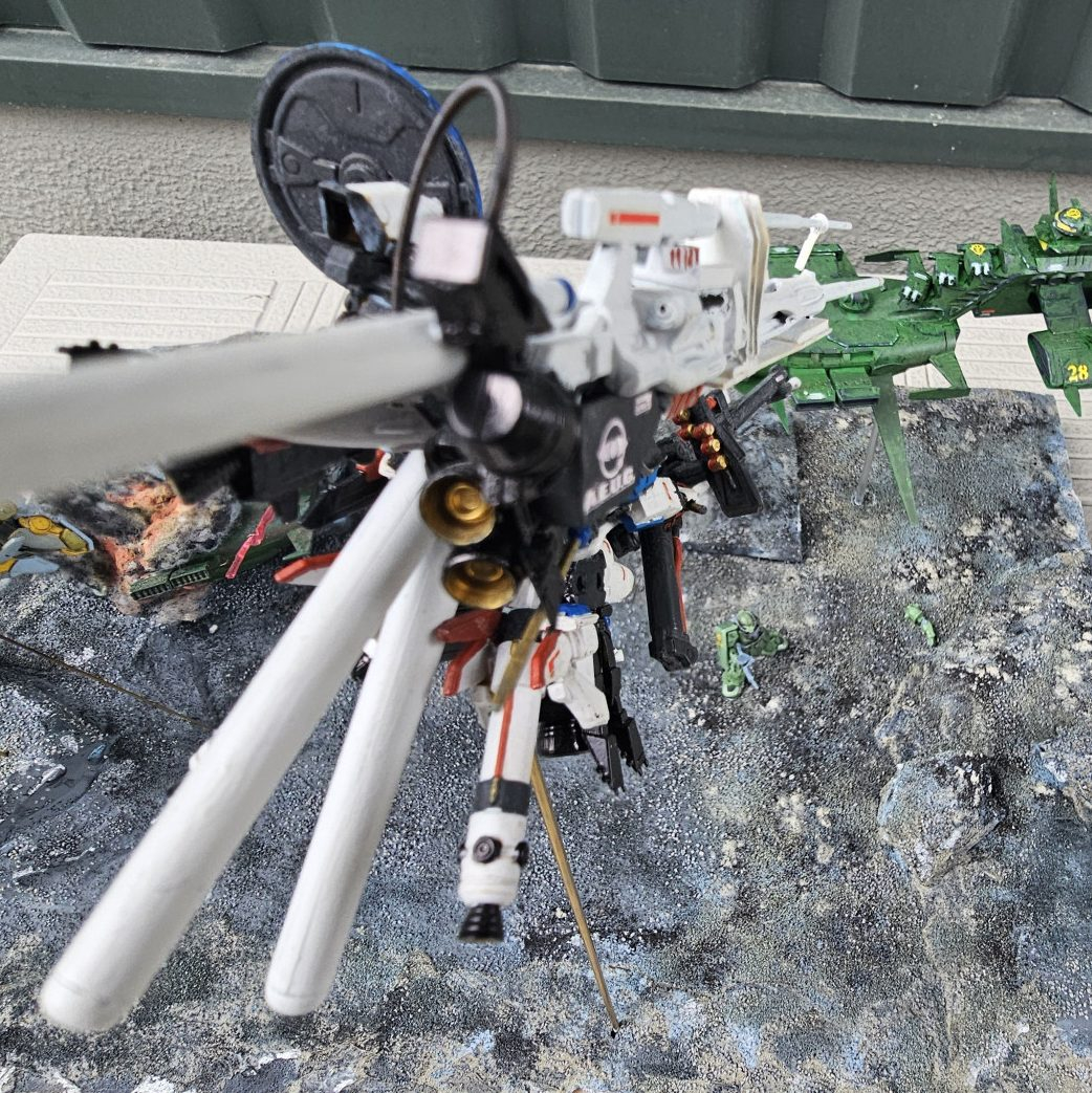 切り捨てられるザクlllとZです。ビームサーベルはHGのランナーから作ってます。