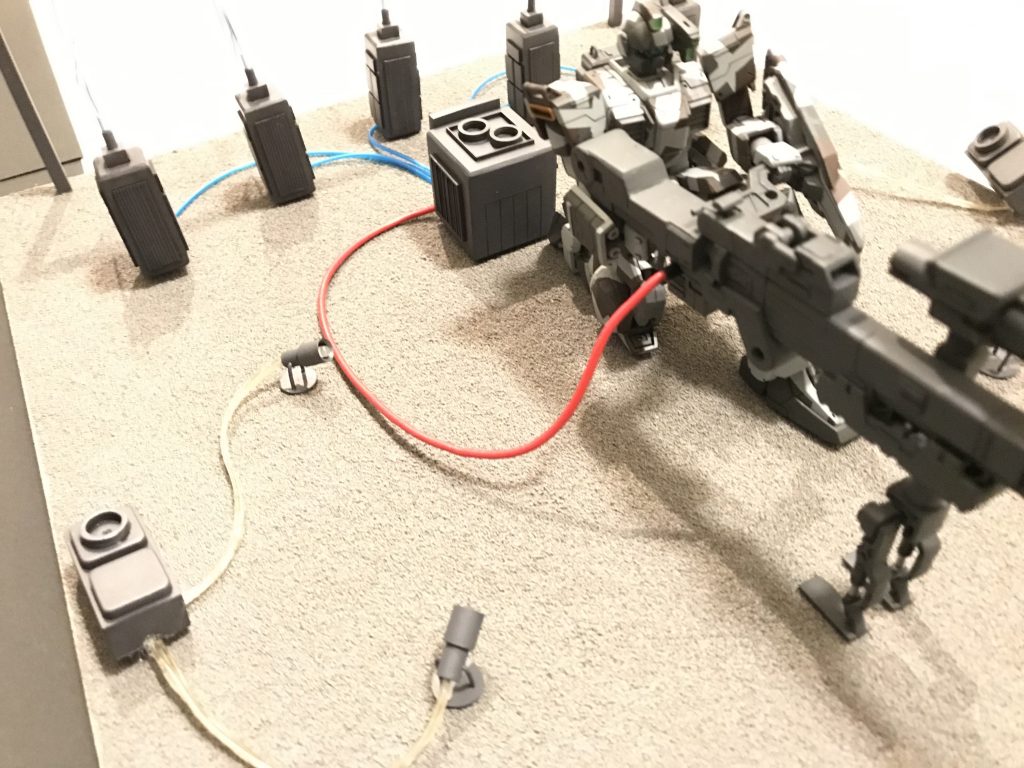 変電設備やスポットライトなどの細かい設営器具が全てフルスクラッチで作られてる器用さと細かさ。おまけに光って、UVライトでのいかにも作戦実行中みたいな怪しい光具合が素晴らしいですね。作戦にはジムスナイパーが投入されているのもセンスを感じます。