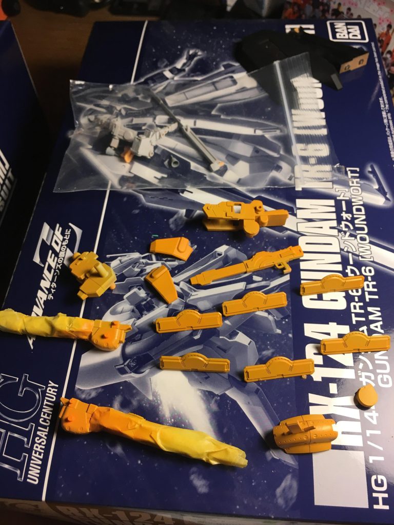 マスキングの様子です。特に脚部は3色に塗り分けたため三段階のマスキングを行いました。