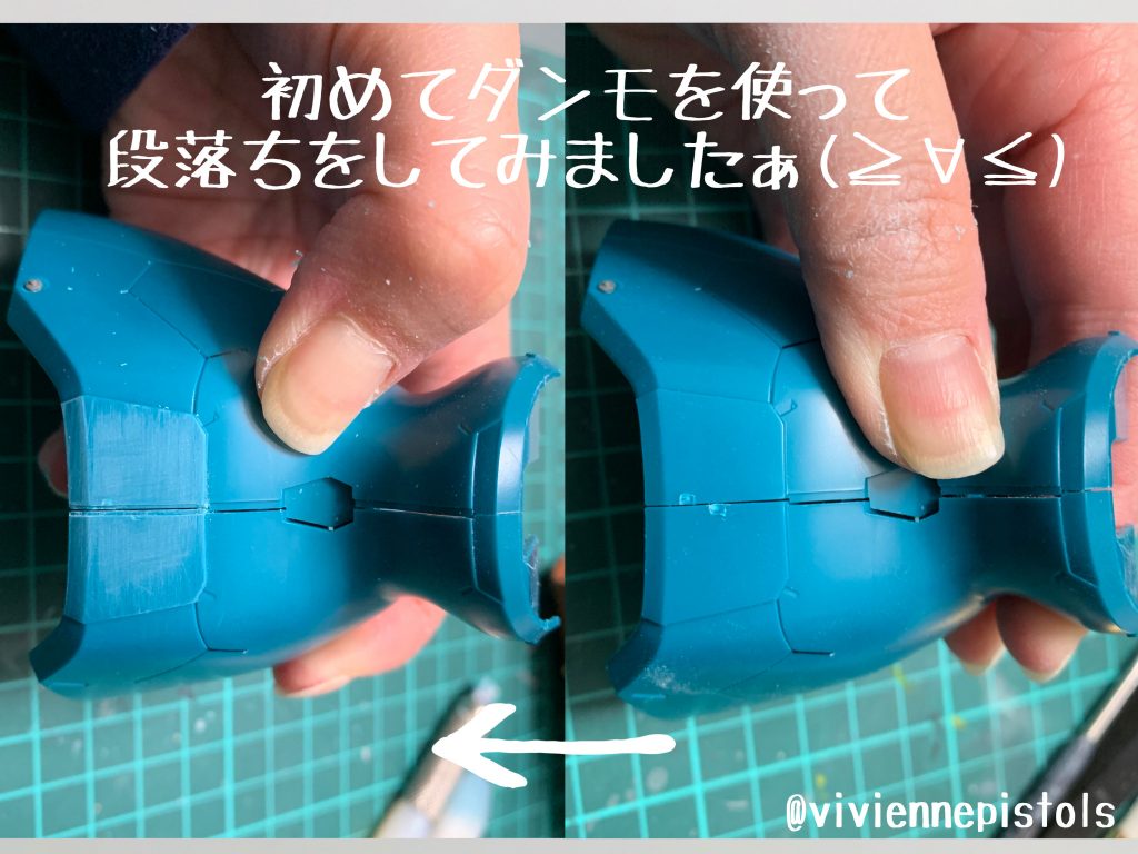 肩アーマーの合わせ目を消す為に、後ハメ加工をしました。