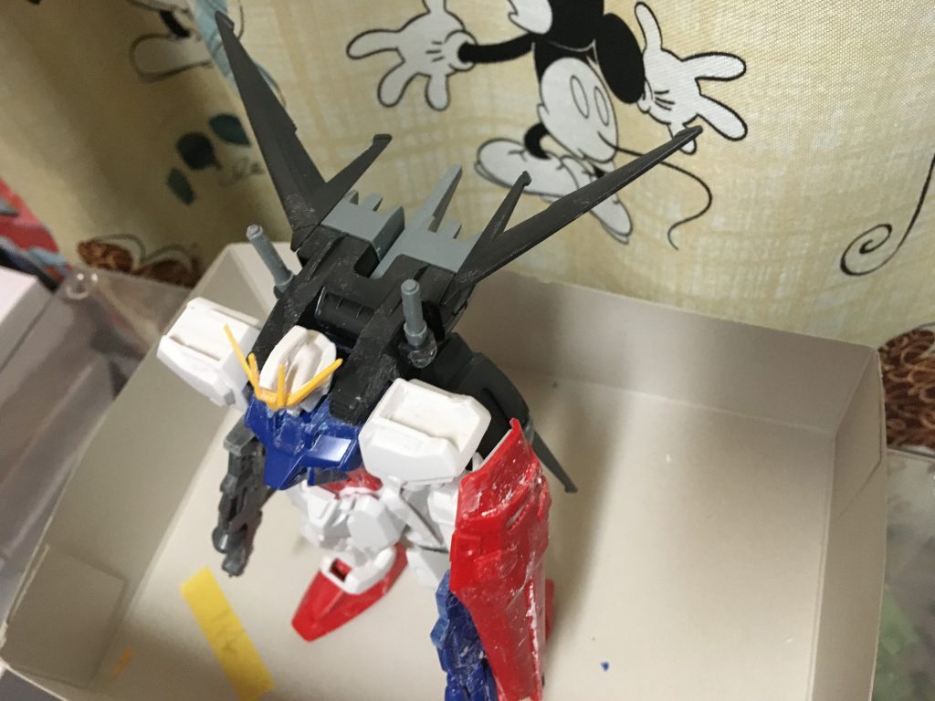 1/144 コレクションシリーズのストライクガンダムを筆塗りで仕上げました。エールストライカーはHGスローターダガーから、ビームライフルはHGドレッドノートから持ってきました。