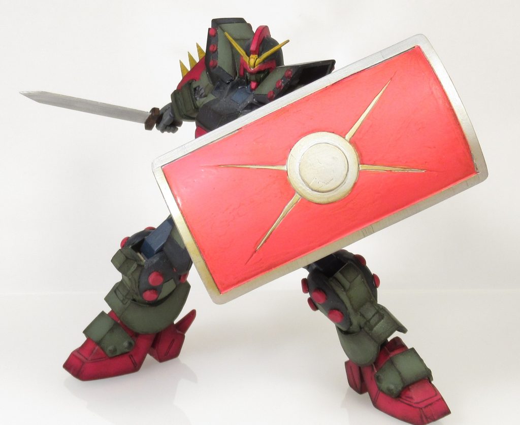 過去作にはなりますが、今回新たに武装を追加しました。ネロスガンダムはローマ兵をモチーフにしているのであれば武器を持っていてもいいじゃないかと思い、剣と盾をプラ板で作りました。結構前に作成したのであまり覚えていないですが、胴体は旧キットのコマンドジムで下半身と頭は旧HGのEzー8、足はアシュタロンを幅詰めしています。まあ、ほぼプラ板とパテで形状変更しています。見ていただけると幸いです。