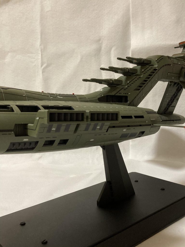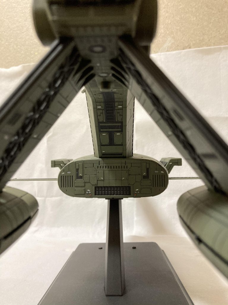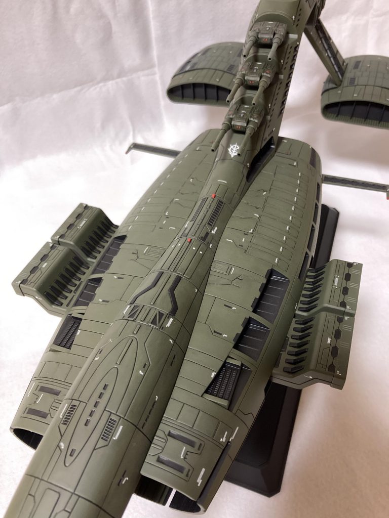 濃緑だからガンダム風味が感じられるけど、これグレー系に塗ったらスタートレックかスターウォーズとかに出てきそうなくらいのディティールですね。