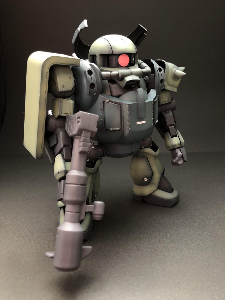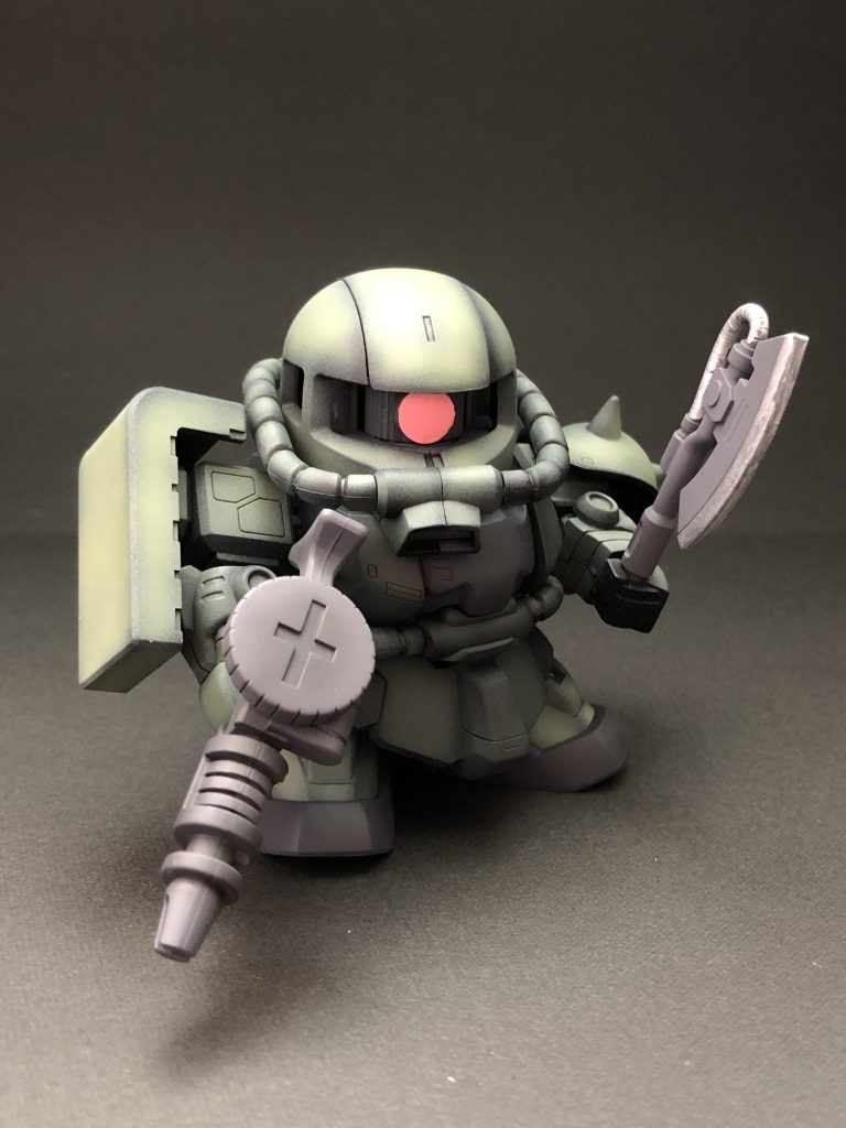 パーツ取りに使ったBB戦士ドムはシャア専用カラーで塗装しました。武器はザクバズーカ。