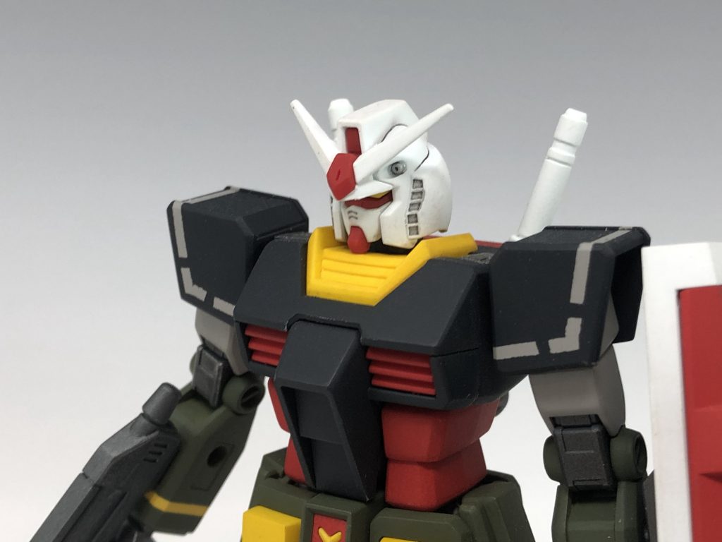 特に無いです。ただ単にリアルタイプカラーのガンダムが欲しかったので、手軽に完成させられそうなEGガンダムを選んだだけで、特に「ここを見てっ!!」という所はないです。強いて言えば各部のラインはデカールではなく塗装で塗り分けしたって事でしょうか。