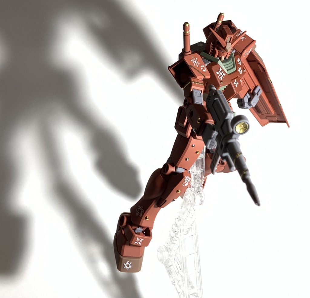 エントリーグレード ガンダム クリスマスカラーを成形色、つや消し、100均アイテム使用でクリスマス仕様に振り切って仕上げました。