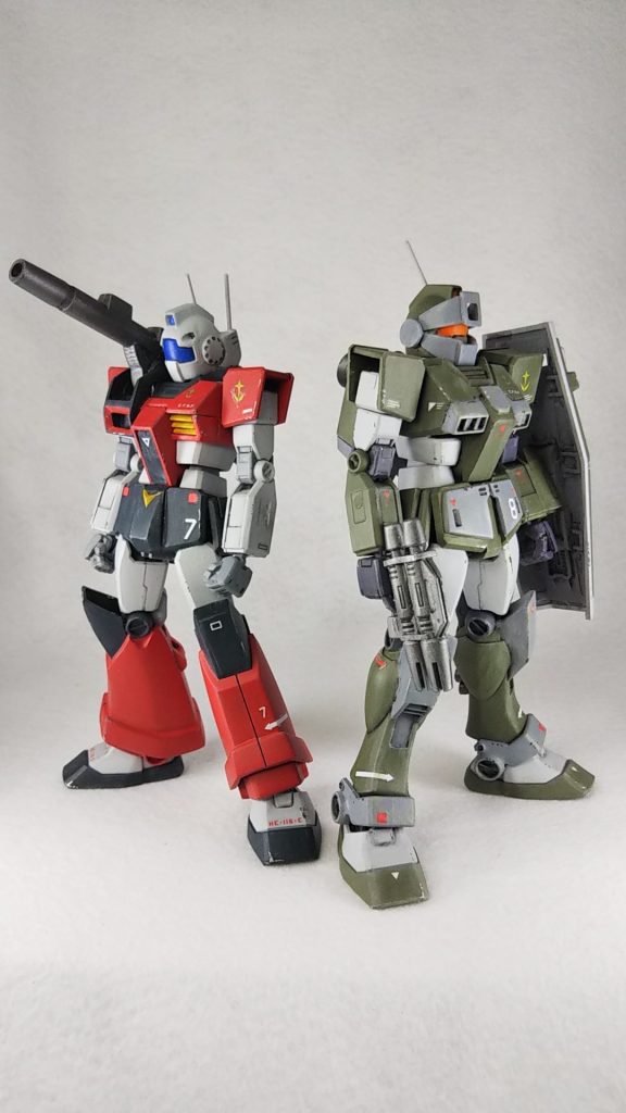 自分は旧キットとHGUCのジムをミキシングしてジム・スナイパーカスタムを製作しましたが、バイザー可動も二連装ビーム・スプレーガンも製作できなかったので憧れます・・・。