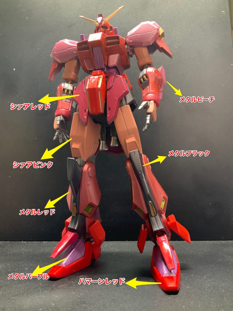 クワトロ大尉が好みそうな漢字デカールの「参」もとても勇ましく見えますし、いろんな赤系統の色を使う事で、全体的に間延びを感じさせない締まった印象を受けました^^