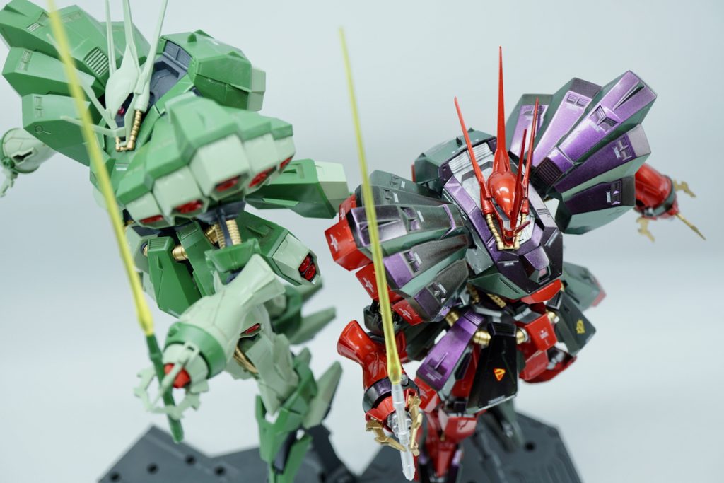 以前からちょくちょくと部分的に使ってはいた偏光塗料なのですがここまでメインに使ったのは今回がはじめてでした。見る角度によって色が変わるのがとても面白いです!そうでしたね、アクシズは騎士。ZZのアクシズMSは騎士の名に恥じない機体作らなければいけないですね♪