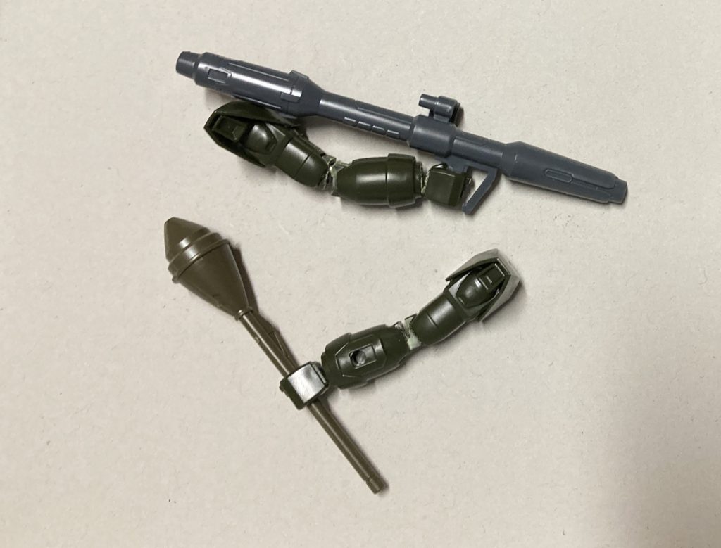 武器を持たせるために関節の角度を少し変えています。背中の荷物はホビーショーのジャンク詰め合わせで入手したものを背負わせました。