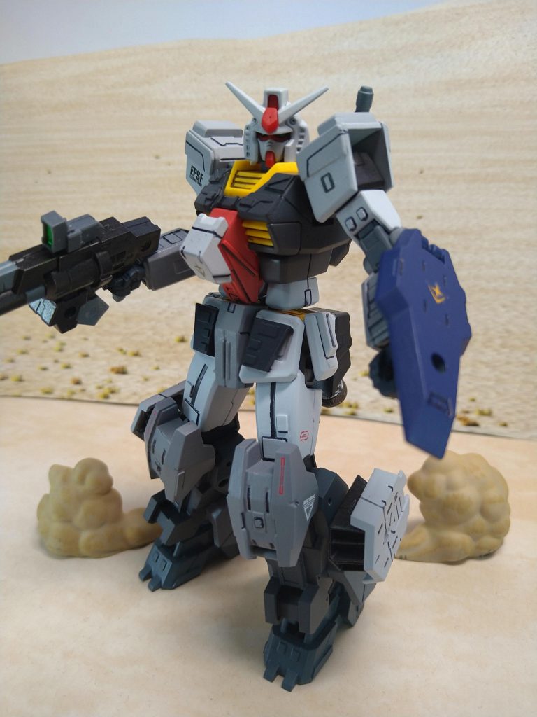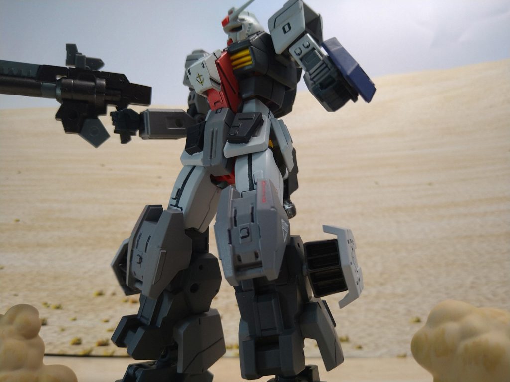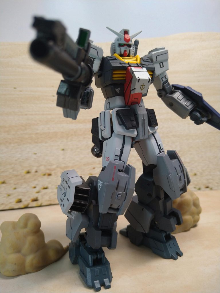 地上での高機動を実現するには、脚部の改善が必須と考えた開発部は、「RX-78-2 ガンダム」を素体に脚部パーツを大型化、加えて左右には大型のスラスターを配備、