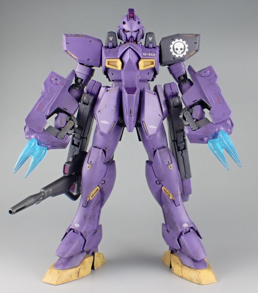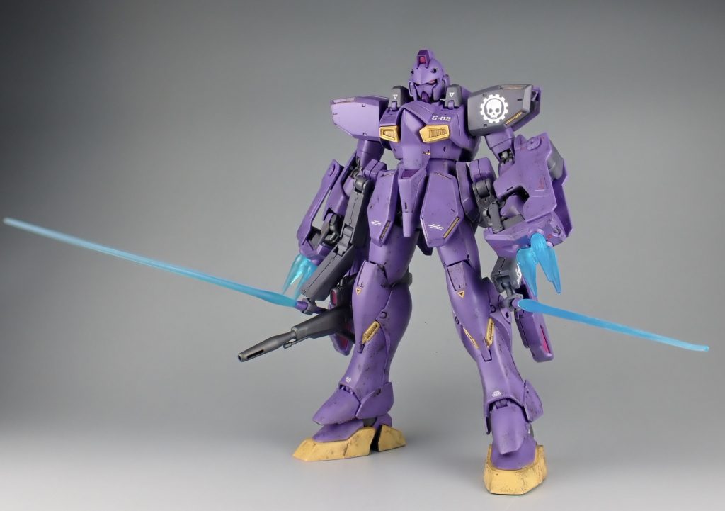 RE1/100 ガンイージ2号機 Fタイプ完成しました。F90のミッションパックのFタイプを装備しています。Fタイプ装備が後のクロスボーンガンダムに繋がるデザインなので、塗装も宇宙海賊風に塗っています。