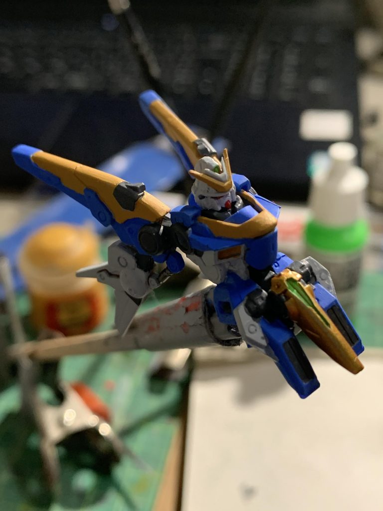 ガンダムアーティファクトのV2アサルトバスターを作りました。 サイズが小さい、差し色が多いと随分難儀な代物でしたが、完成した時の満足感は相当なものです。 色に関してはV2本体は黄色、アサルトパーツは金色と変化を入れてみましたがどうでしょうか? V2ABに限った話ではないですが、このシリーズは独自のモールドのお陰で作る人によって配色が微妙に違うのが面白いですね。