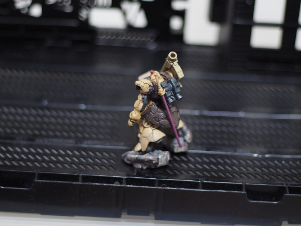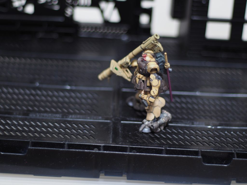 アクリジョンやアクリル、エナメルにて筆塗り塗装、墨入れ