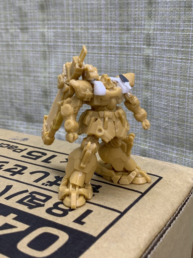 シールドのアームはアーティファクトのジムのパーツを使用しました。バーニアに真鍮線を刺しました。