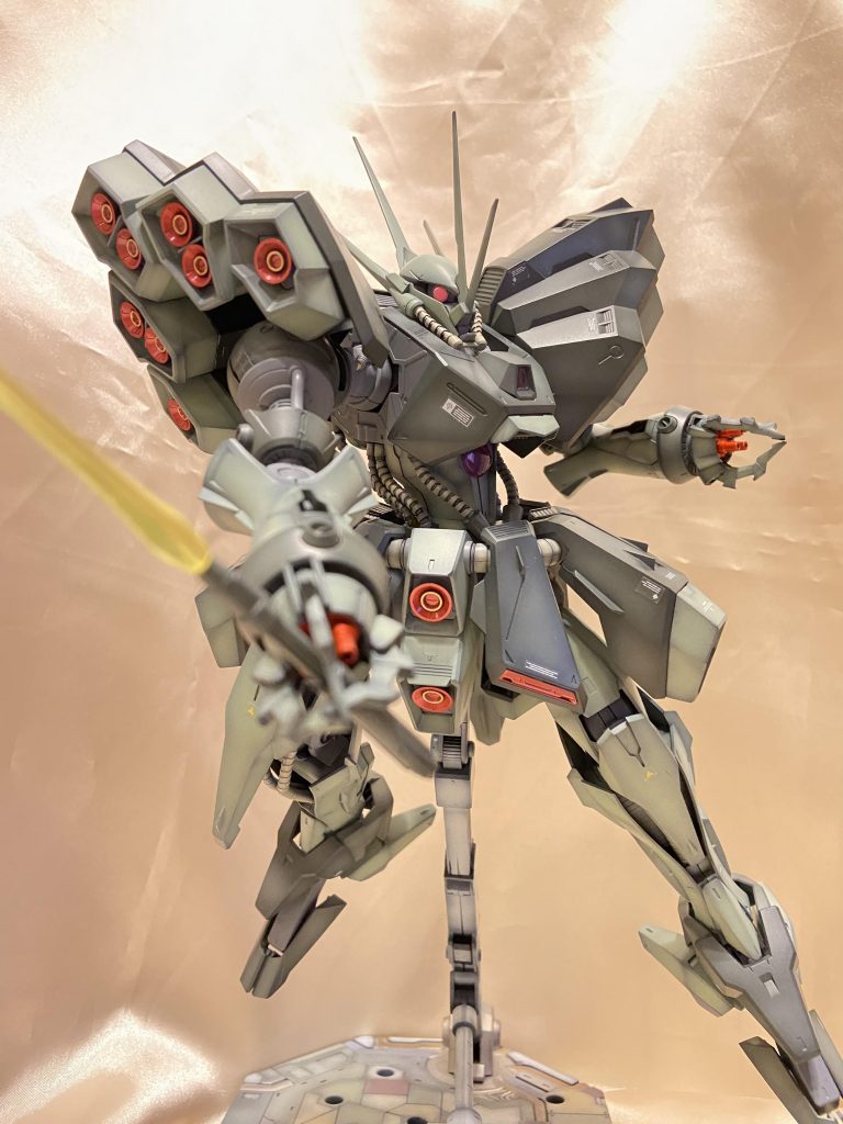 おぉー、カッコいい!このスラスター処理は心が折れますね😅カラーリングも渋くて素敵です😊