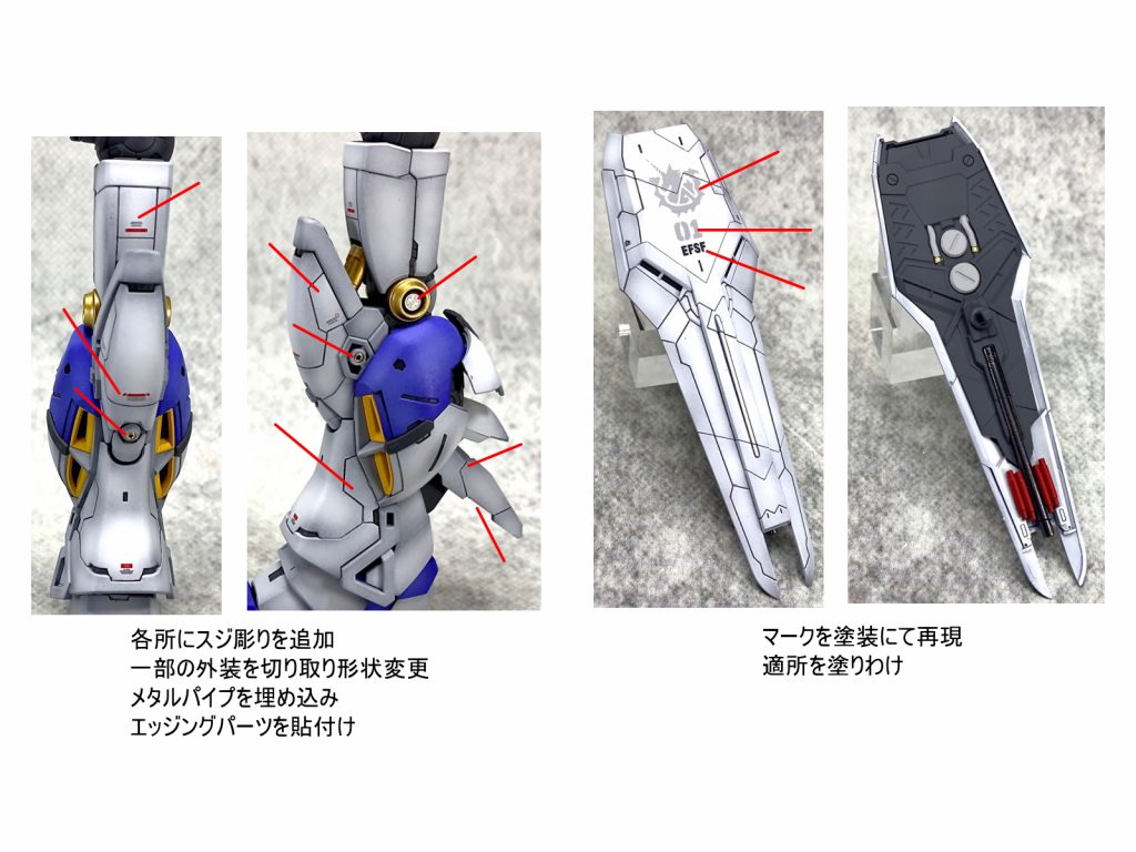 太ももをプラ板にて1mm幅増ししました。 各所にスジ彫りの追…
