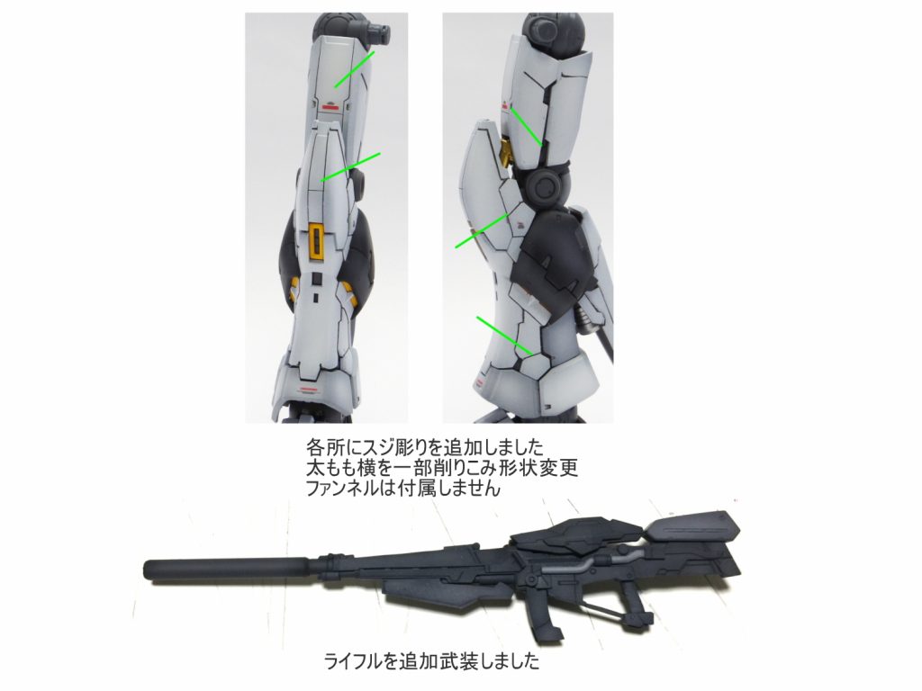 各所にスジボリにて情報量を追加して塗分け 太ももをパテにて幅…