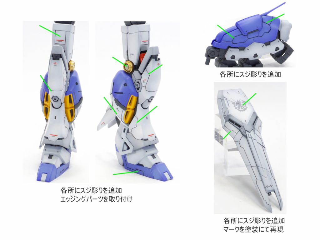 各所にスジボリにて情報量を追加して塗分け 太ももをパテにて幅…