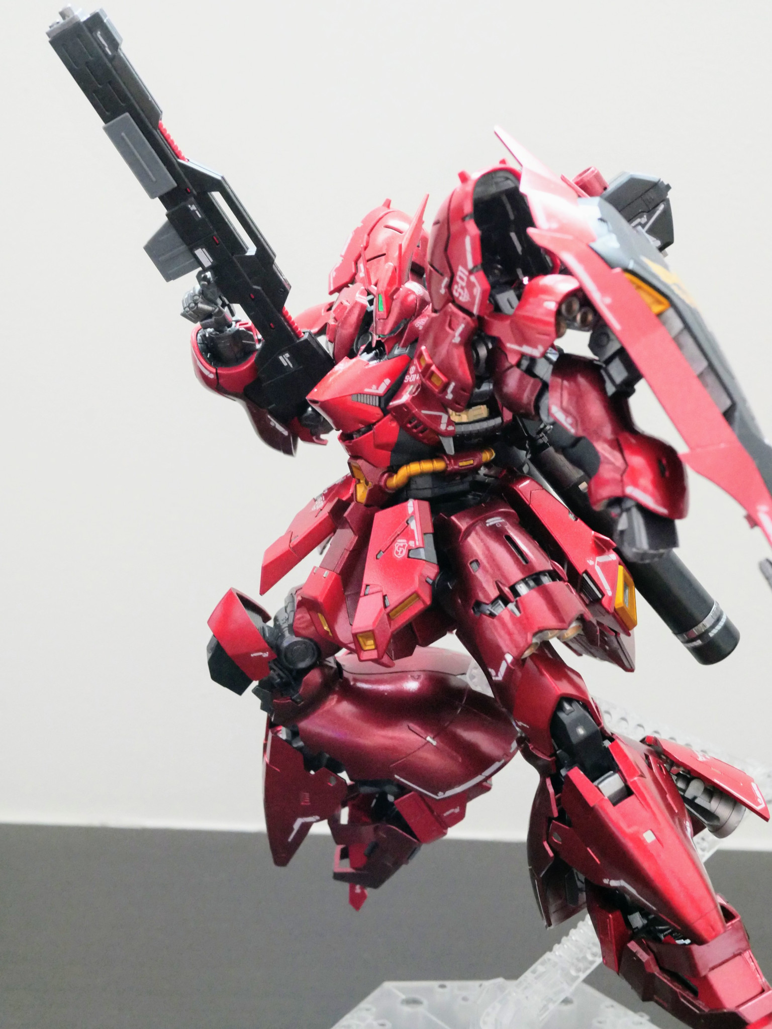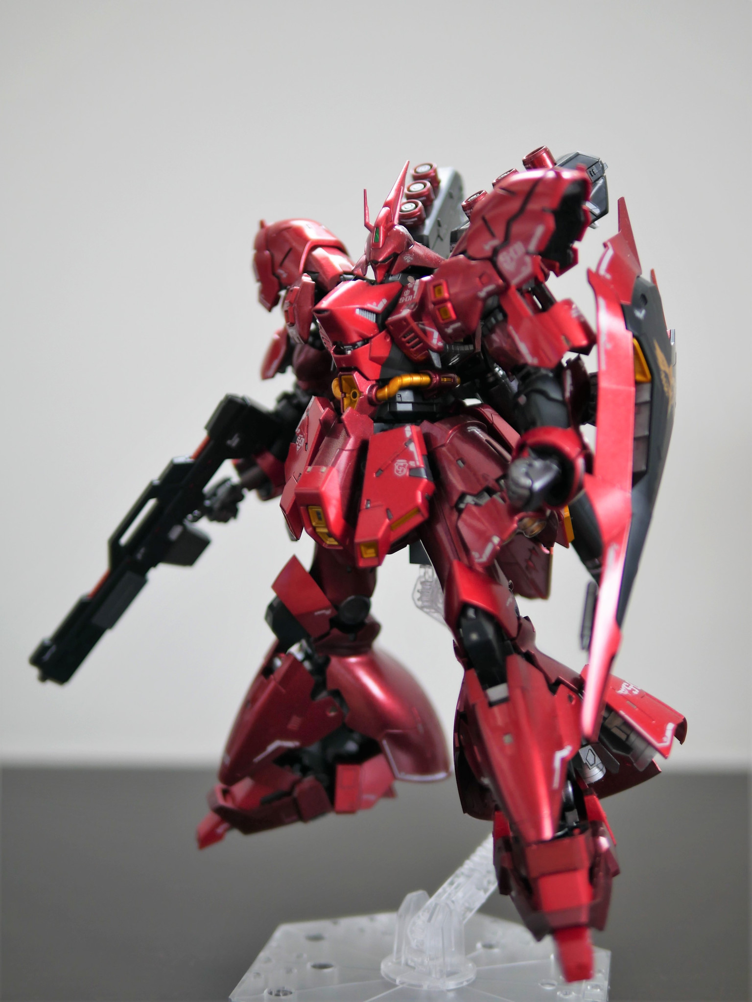 綺麗で丁寧なサザビーですね!製作の手間と苦労が目に浮かびます!😄キャンディ塗装なのですが!色合いが良くて塗料のチョイスが良かったのでしょうね!😀