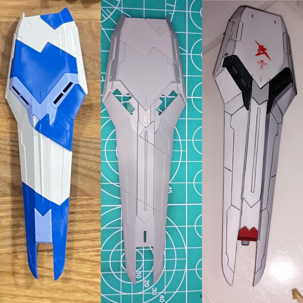 劇場版のνガンダムに寄せるため、ファンネルとシールドのパネルを埋めました。
