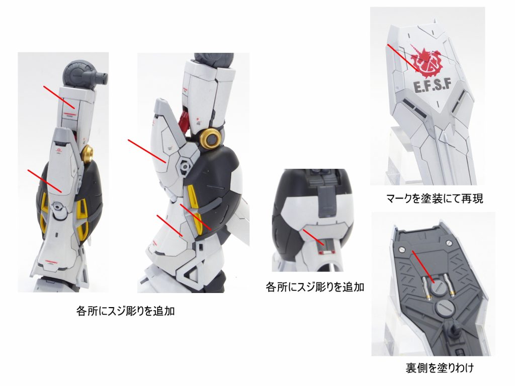 各所にスジボリにて情報量を追加して塗分け 太ももをパテにて幅…