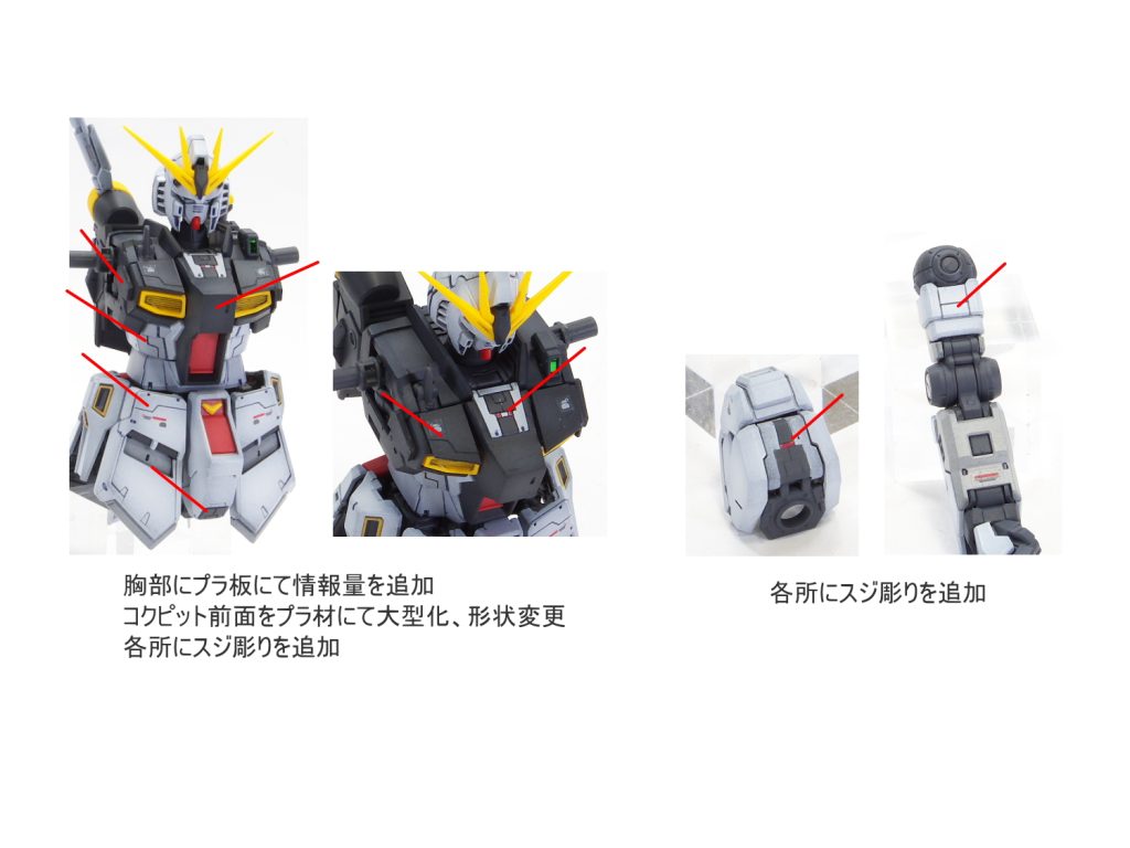 本体の各所のプロポーションを変更しました。 全体的にスジ彫り…