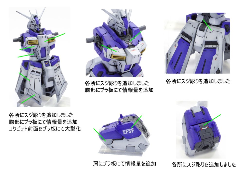 gunplacra… RG 2023.01/05更新 RG Hi-νガンダム 1432 152 いいねしたモデラー(152) 0 2 作品を共有 胸の真ん中をプラ板にて形状変更、胸ダクトの上下も プラ板にて形状変更、肩スジにてメカ風の情報量を追加 肩端側を一部プラ板にて0.5mm前に大型化 ファンネルコンテナのアンテナ部分の背びれみたいな箇所を 切り取り形状変更、太もも、フロントアーマー、腕、スネ回りにも スジボリにて情報量を追加しました。 グラデーション塗装にて仕上げました。 逆襲のシャア ベルトーチカ・チルドレン 改造 RG スジボリ グラデーション塗装 情報量を追加してグラデーション塗装にて仕上げました。 コメント コメントをして応援しよう コメントにはログインが必要です gunplacraft 主に連邦系のMSが好きで製作しています たまにジオン系のMSも気が向いたら製作しています 自分の好みに改造したりしています。 9 RG ガンダム ダブルオーライザー 適所にスジ彫りの追加とプラ板チップを埋め込みました。 グラデ… 9 HGUC ジオ 全体的にスジ彫りを追加して情報量を増やしました。 股間部をプ… 9 HGUC ゲルググ 本体の各所のプロポーションを変更しました。 全体的にスジ彫り… 9 HGUC グフカスタム 太ももをプラ板にて1mm幅増ししました。 各所にスジ彫りの追… gunplacra…さんのページ この作品をお薦め作品に設定する Please login to update your profile! Please login to update your profile! Please login to update your profile! Please login to update your profile!