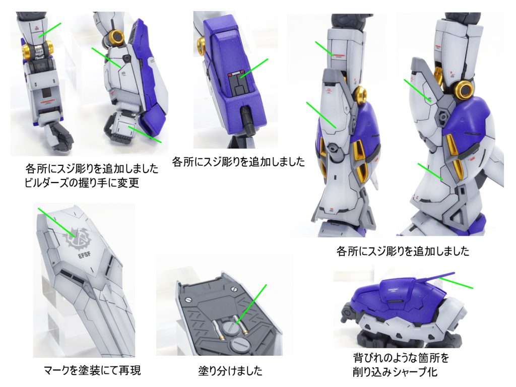 太ももをプラ板にて1mm幅増ししました。 各所にスジ彫りの追…