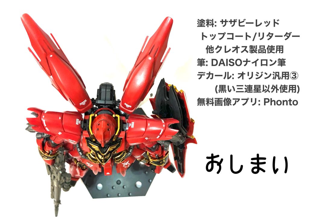 脚のスラスターはシナンジュ用デカールを補填するためにスプリンター部分塗装。