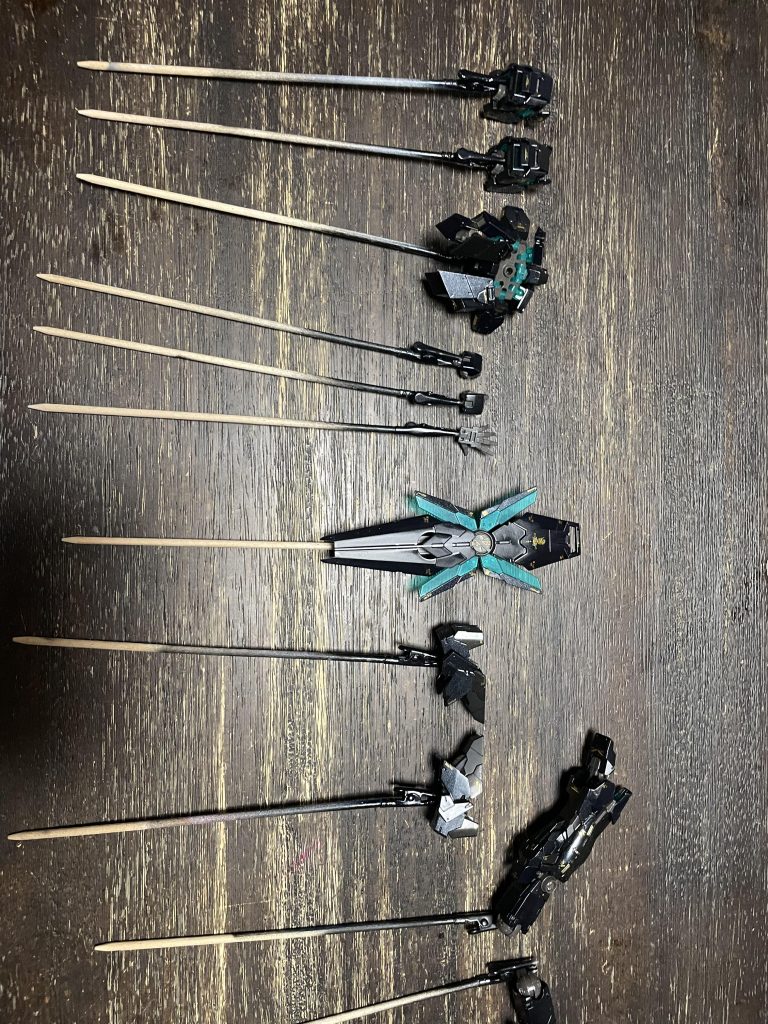 アンテナ類はガンダムマーカーのホワイトゴールドを使い目立ちすぎずかつちょうどいいカラーを目指しました