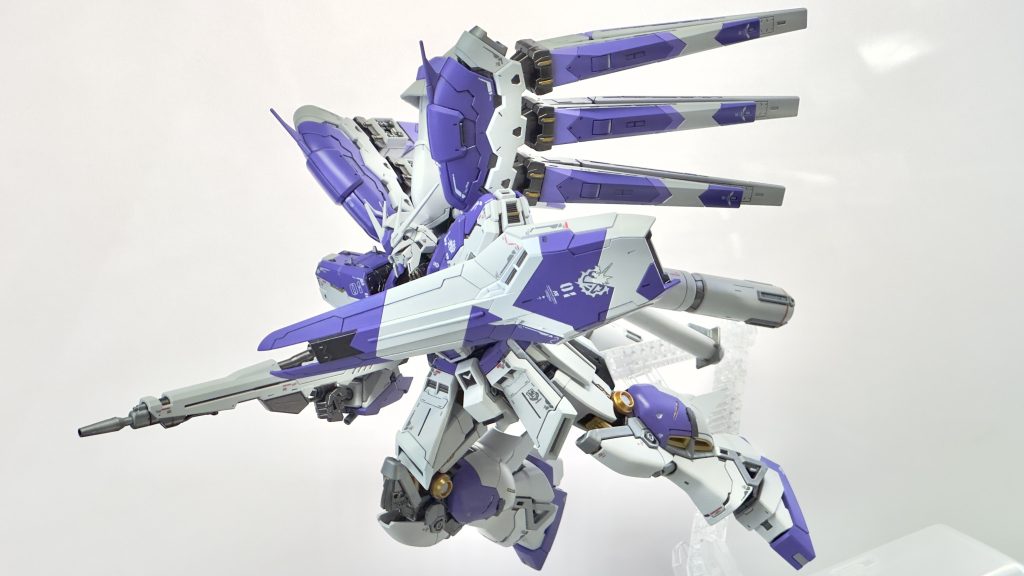 プラモの青もいいのですが、自分の中ではHi-νガンダム=紫だったので今回は素直に紫で仕上げました。