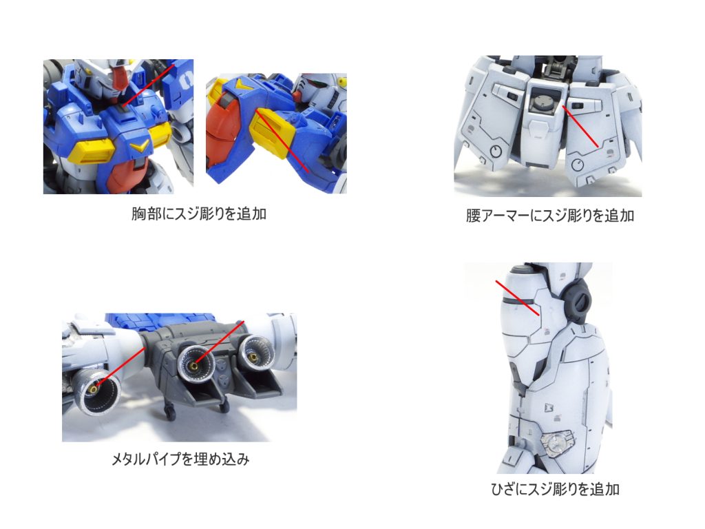 太ももをプラ板にて1mm幅増ししました。 各所にスジ彫りの追…