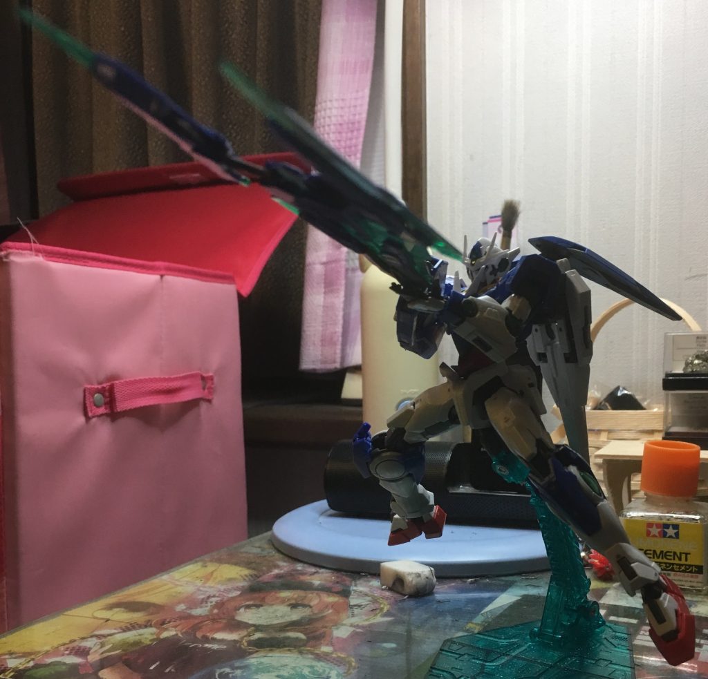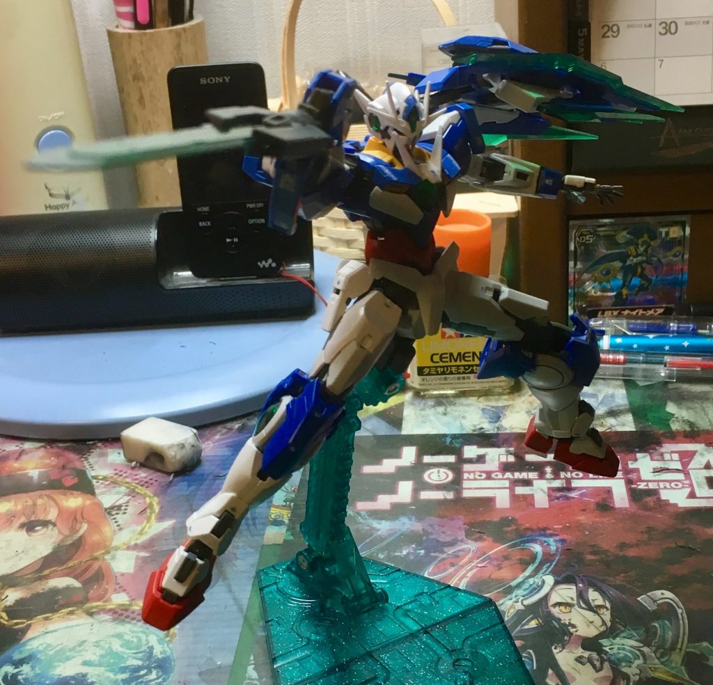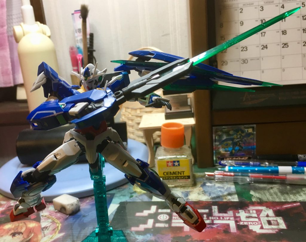 マイスターである刹那の意向を汲んで、戦闘を行うための機体ではなく、クアンタムシステムを用いて戦場に高濃度粒子領域を形成し、戦いを止めることを目的として開発されているが、