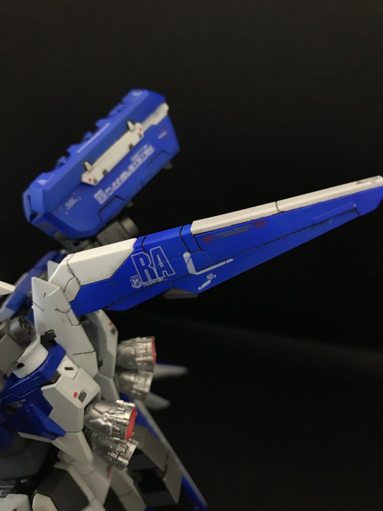 RGνガンダムを使ってHi-νガンダムを作ろうとしたところ、RG Hi-νガンダムが発売されたため途中まで作って積んでいたものをリメイクしたものになります。
