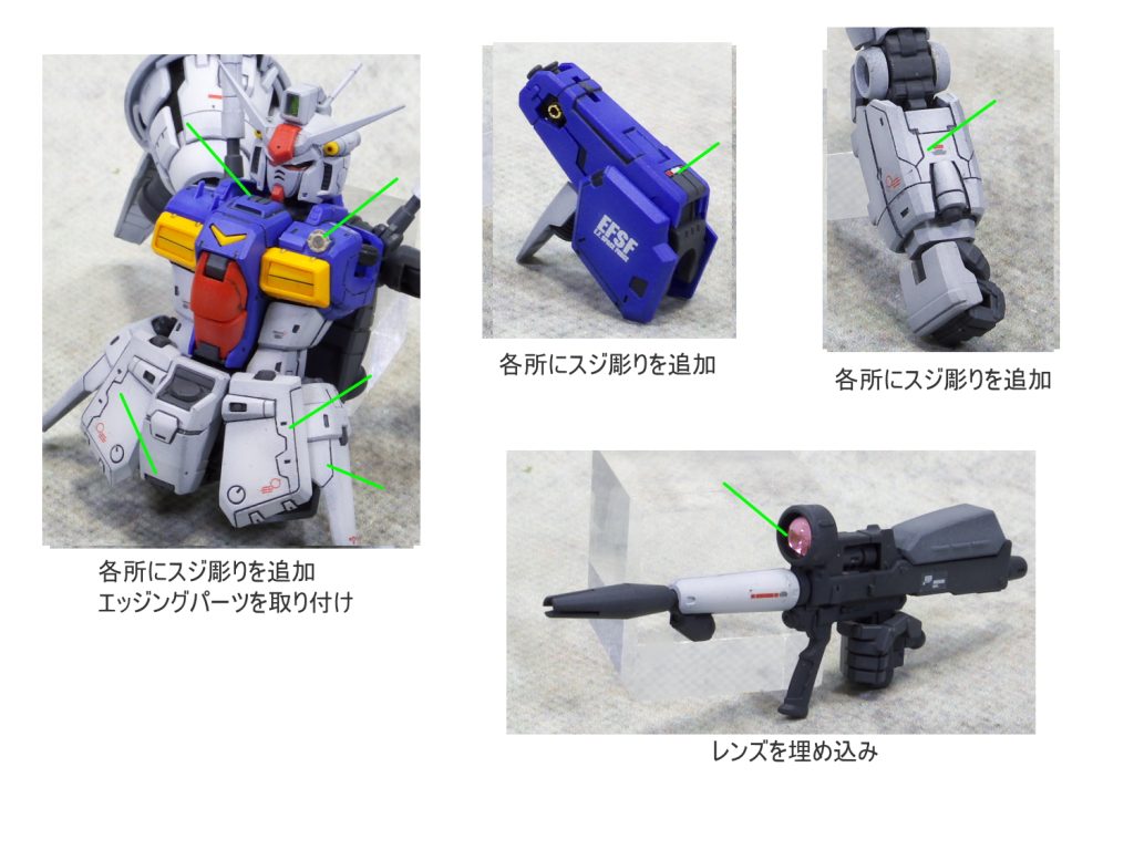 適所にスジ彫りの追加とプラ板チップを埋め込みました。 グラデ…