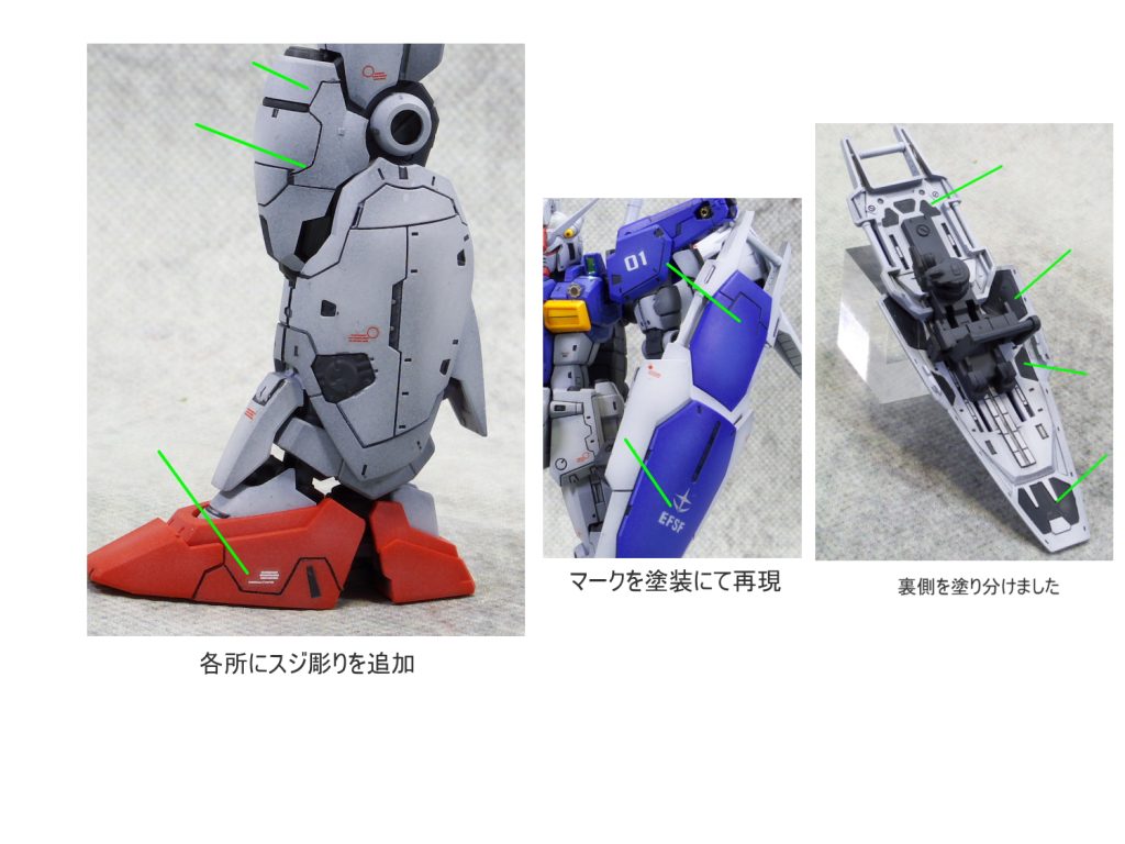 太ももをプラ板にて1mm幅増ししました。 各所にスジ彫りの追…