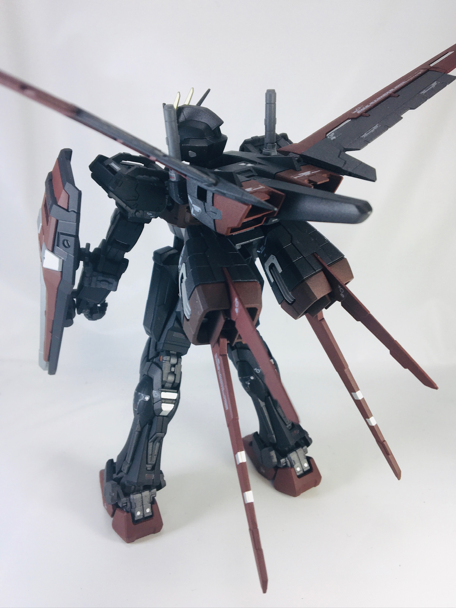 Seed系の機体はキラキラしたイメージが強いのでリアリティが高まるように金属感を出しつつツヤ消しで完成させています