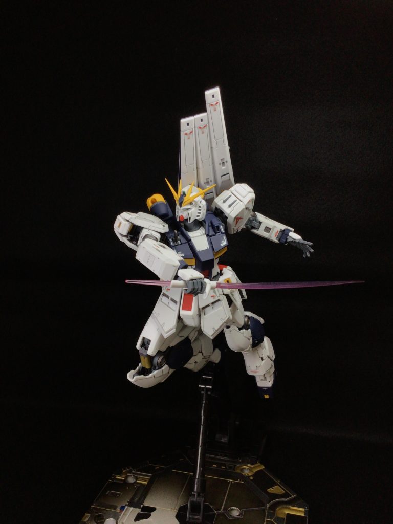 今回はリハビリがてらのνガンダム君です。フレームを塗り塗りしてトップコートを吹いただけ。武器は好みによりビームマグナムに換装しております。