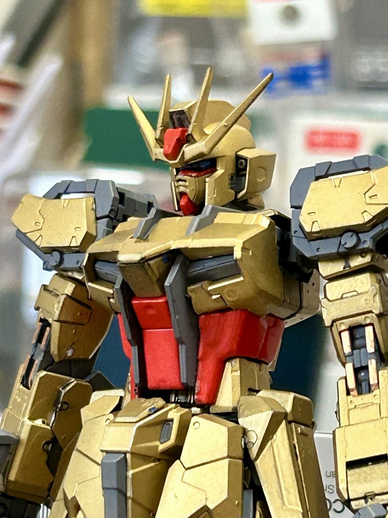 映画を観てアカツキガンダムに惚れたけど、全然キットが手に入らないから、RGエールストライクをプロトタイプアカツキとしてしまいました。うん、ゴールドが似合っている。