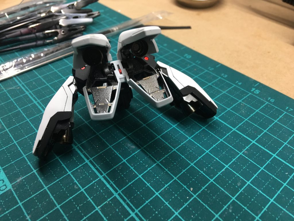 腰のアーマー部分ですが、リアスカートの塗り分けと、サイドスカートにバーニア追加の改造を行いました。