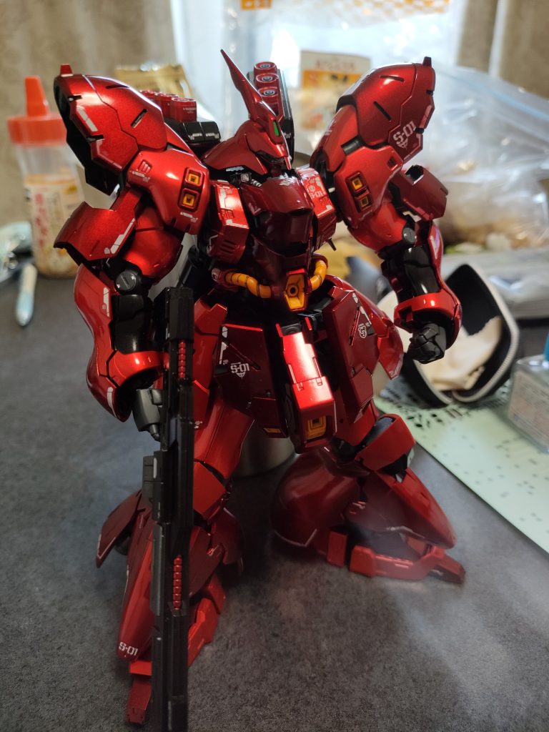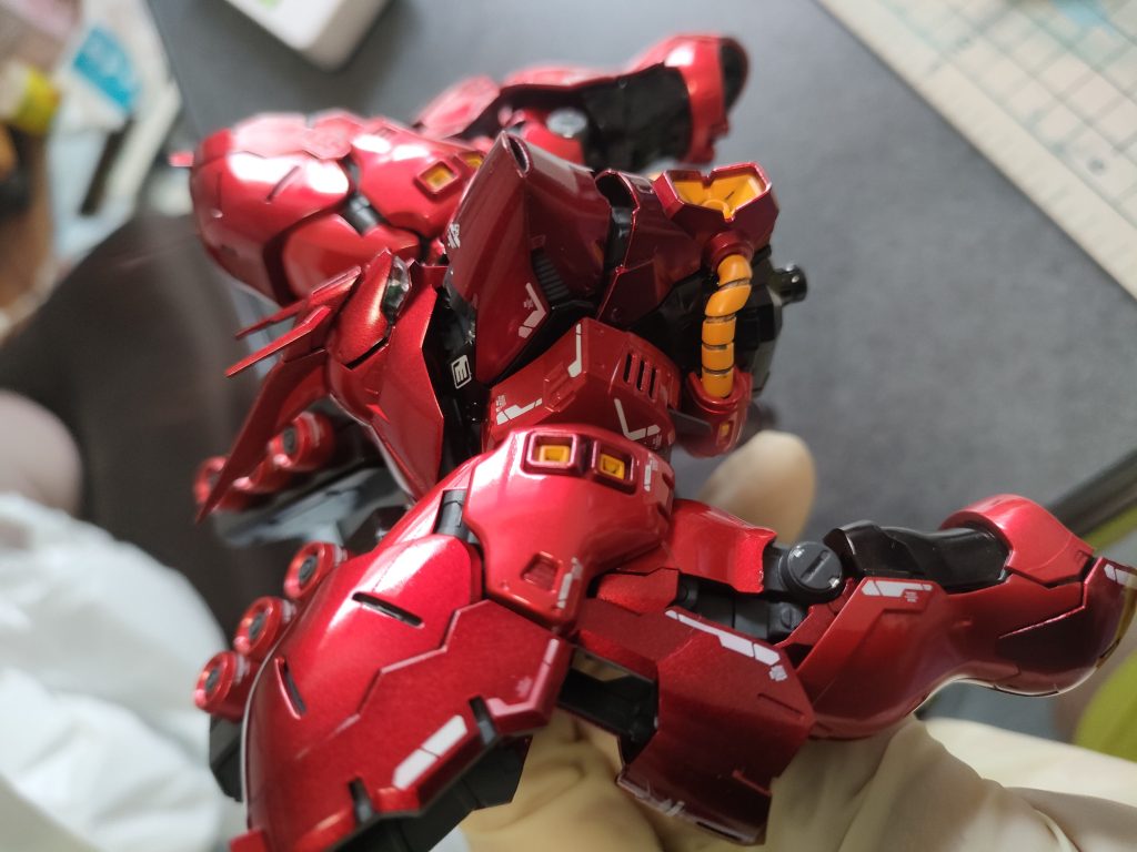 指紋が着くので触るのに気を使う。RGはクリアランスがきつくて塗装後の組み立てが怖くて疲れました。ファンネルは地獄なり。ファンネルの羽はどうせ塗装しても外さないから見えないし塗る意味無いような・・・。