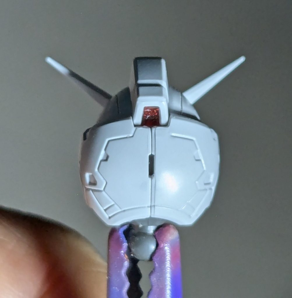頭部内側色々削って左右幅を1mm弱位詰められたかな?な感じ。ついでに頭部バルカン周りの丸み、頬、アゴやマスク下なども少し削りちょっとスマートにして私好みになりました✨