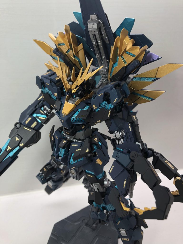 外装紺色部の濃淡をはっきりさせ、ゴールドのデカールで、ぱっと見の情報量を増やしてみました。