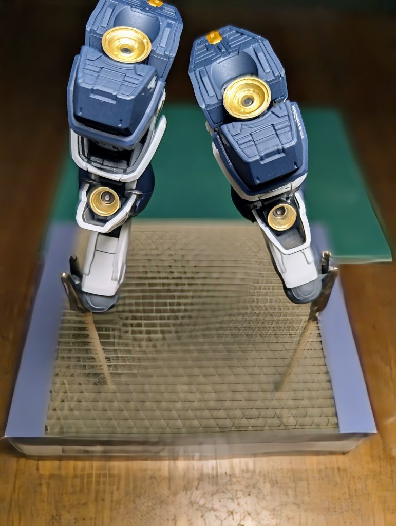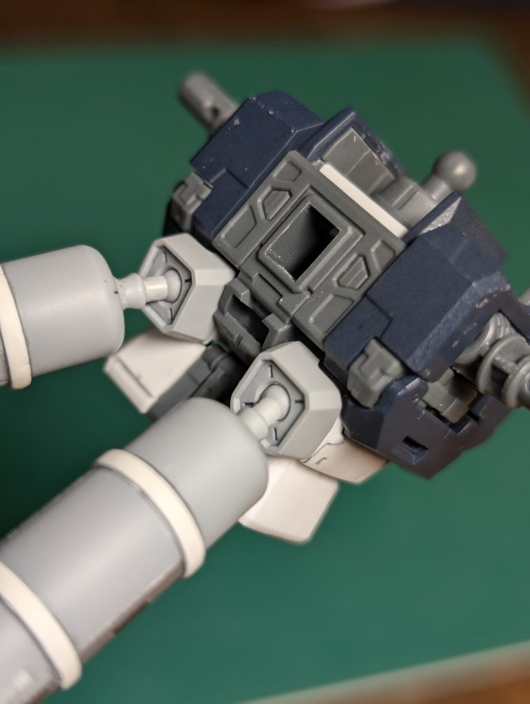 脹脛部のスラスターカバー?と腰のサイドアーマー?は、裏をグレーで塗装しました。
