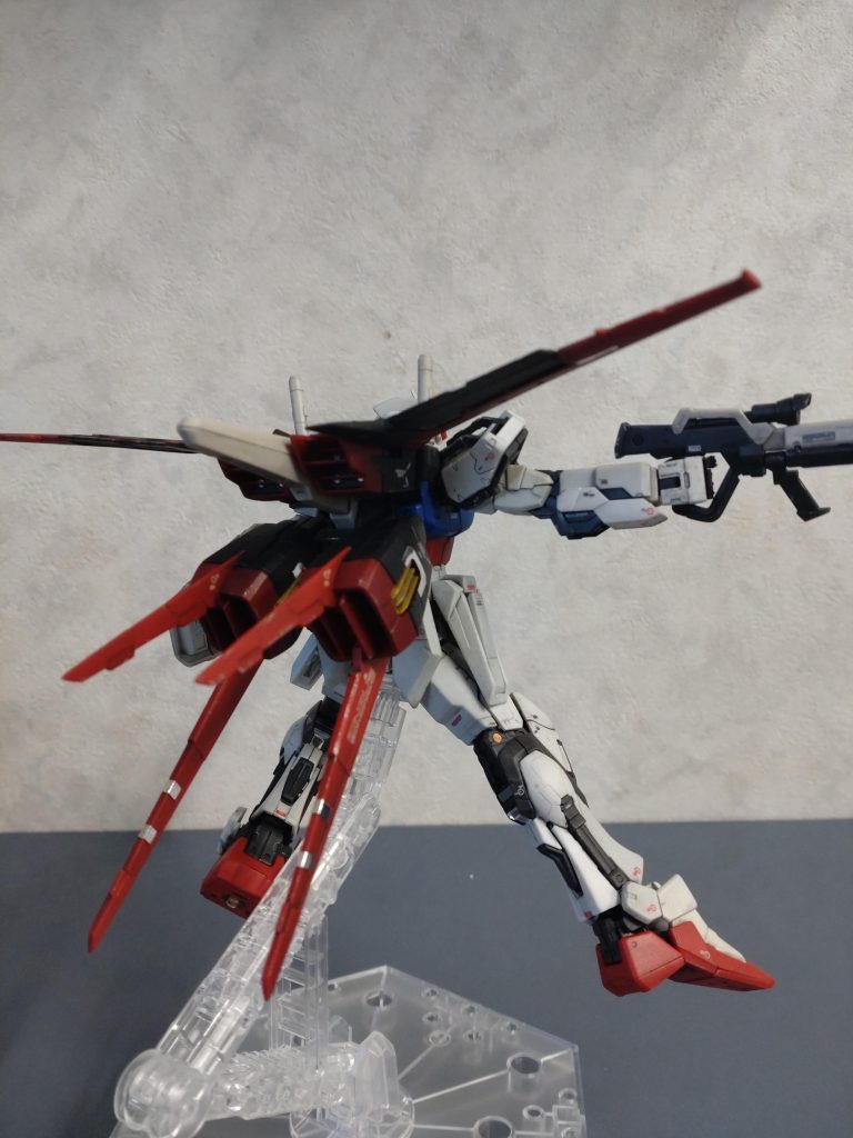 写真撮ってから気がついた。エールストライカーの翼斜めにしてないな(* 'ᵕ' )☆翼立てて再度撮影📸次作もストライクガンダム関係で制作中ですのでよろしくお願いします。