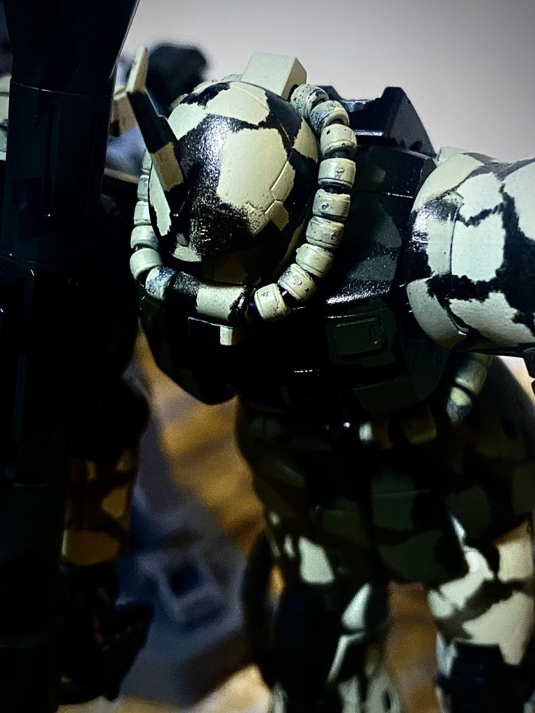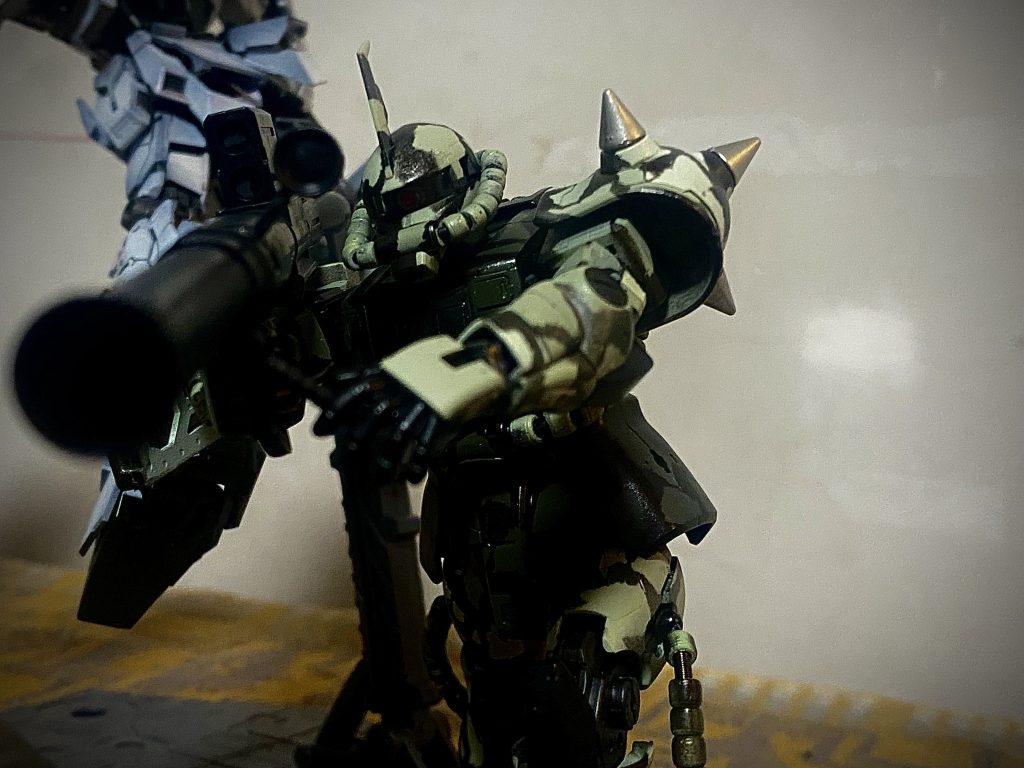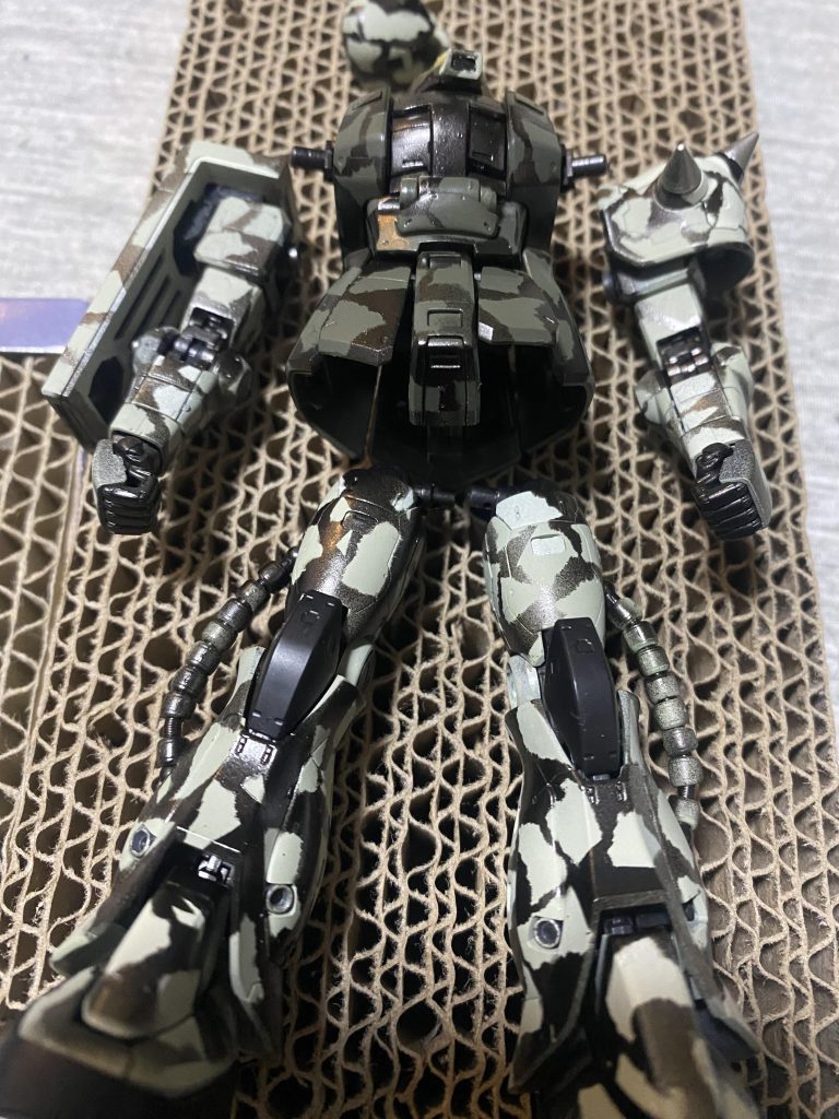 RGザクを製作中に、塗装何にしようかなーと考えていたのですが、一週間悩んでも決められなかったので干支の蛇柄にしよう!という考えに至り、製作しました。
