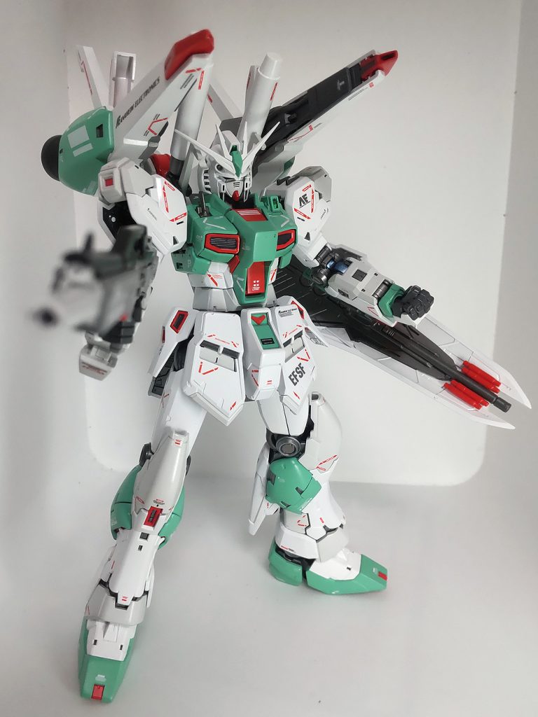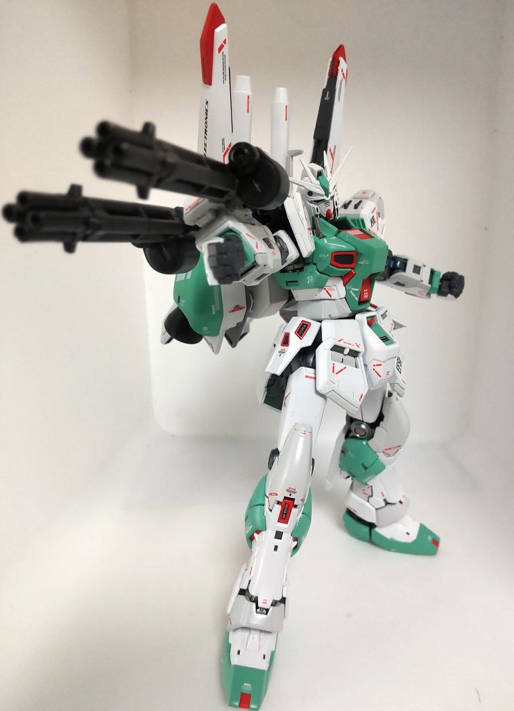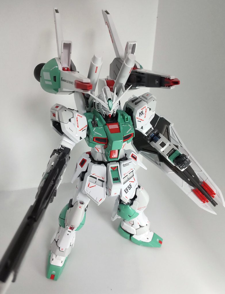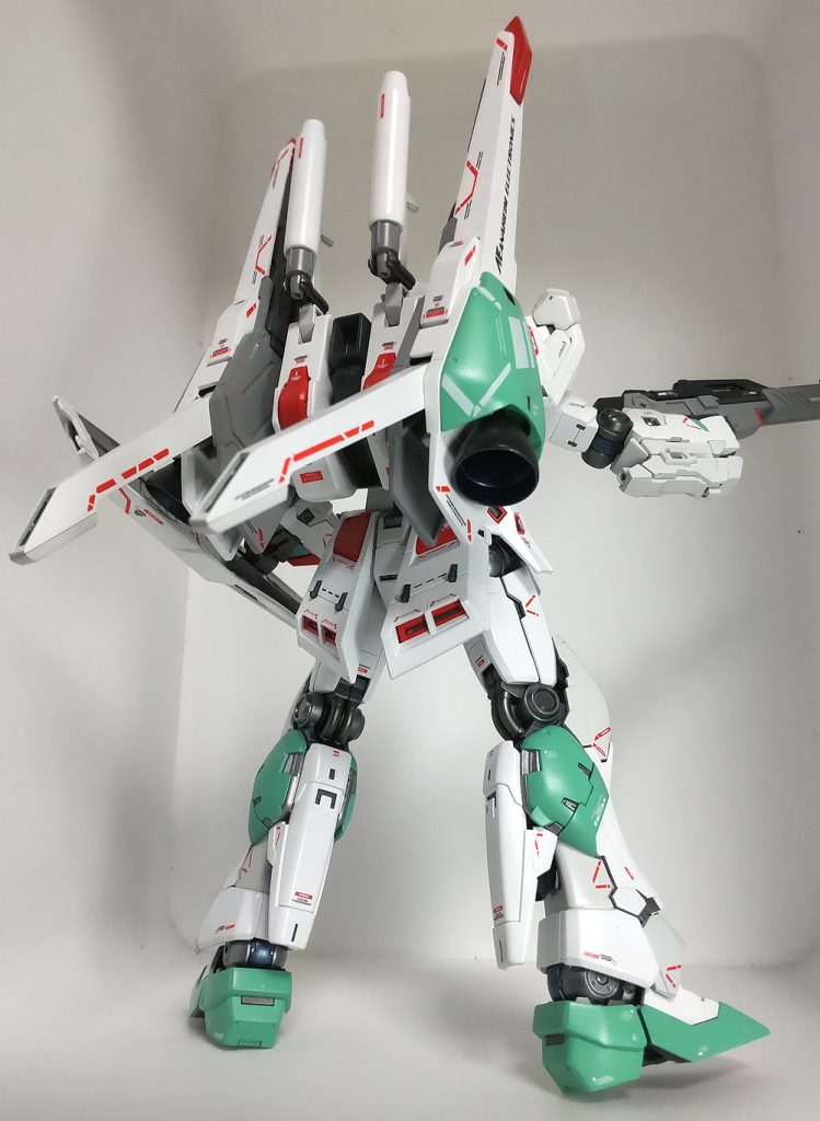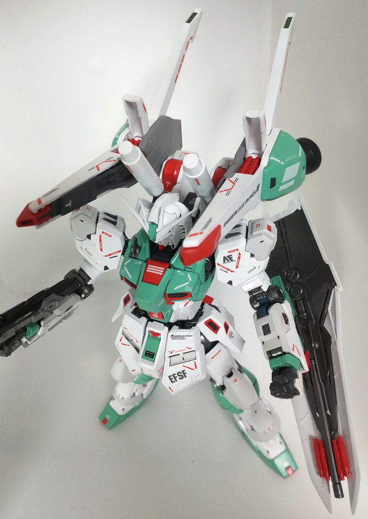 鮮やかな緑系のカラーリングが量産型 ν やジムⅢなどとの接点を感じつつ,オンリーワン機体として違和感のない配色だと思います。